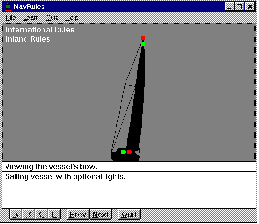 This is a wonderful training tool that gives life to parts of the official Navigation Rules, International-Inland. It concentrates on issues of collision. And so its emphasis is on identifying lights and sounds from different type vessels engaged in varying activities. Yes, sounds. It has the various bells, whistles, and clanks you hear if paddling in a fog or the dark. These are authentic sounds. They are best heard via separate speakers and a sound card, but don’t despair if you are not so equipped. The software contains a special driver that allows your computer’s internal speakers to do a credible job in the sounds department.