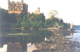 Though never actually completed to Mr. Bannermans specifications, the Island became a bit of Scotland, seemingly plucked out the Scottish Highlands and deposited on a bare bit of rock mid-river. Arriving at the main landing, visitors climbed a steep walk between the arsenal, workshop and superintendent's building, crossed over a drawbridge and passed beneath an arch with portcullis and coat of arms. Past the storehouse on the north side, terraces were laid out for gardens. At the top of the winding path, bordered by shrubs and tiny hillside gardens, was the Bannerman residence, overlooking it all.