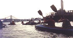 I'm not sure I have all of the answers. But I do paddle in a busy place, New York harbor, where not only do you have numerous ferries, pleasure boats, warships, freighters, barges and tugs but also fast moving ebb and flood currents that often act at cross purposes as well as restrict your ease of movement and choice of direction. I’ve watched and thought a lot about what to do including in the worse case scenario any paddler dreads—a collision you can not avoid (see below). This discussion is not the last word but I hope it gets you to think and to keep an agile mind when paddling in busy waters.