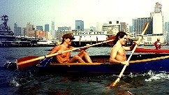 We had already paddled twenty miles around this island thick with concrete, glass and steel-all this in our seventy-five-pound crafts of canvas, rubber, and wood. Ten miles to go. But now the first drops of heavy rain began slamming into the grey river around us; a cacophony of sound much like falling marbles against slate.